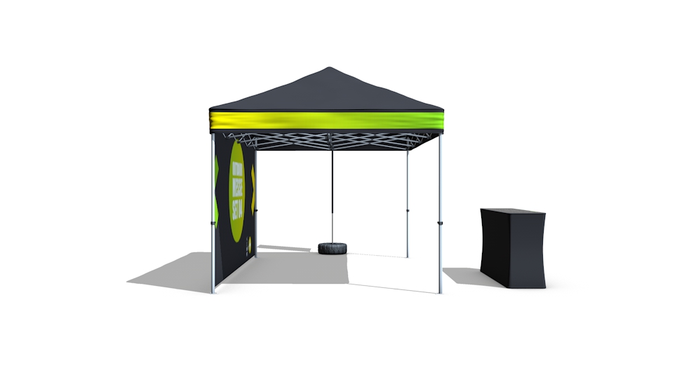 Das Outdoor Messe Set ist ein hochwertiges System, das Sie komplett werkzeugfrei aufbauen und langjährig nutzen können. Dabei lassen sich die Drucke jederzeit unter der Rubrik Nachdruck neu bestellen und an Ihre aktuelle Veranstaltung anpassen.