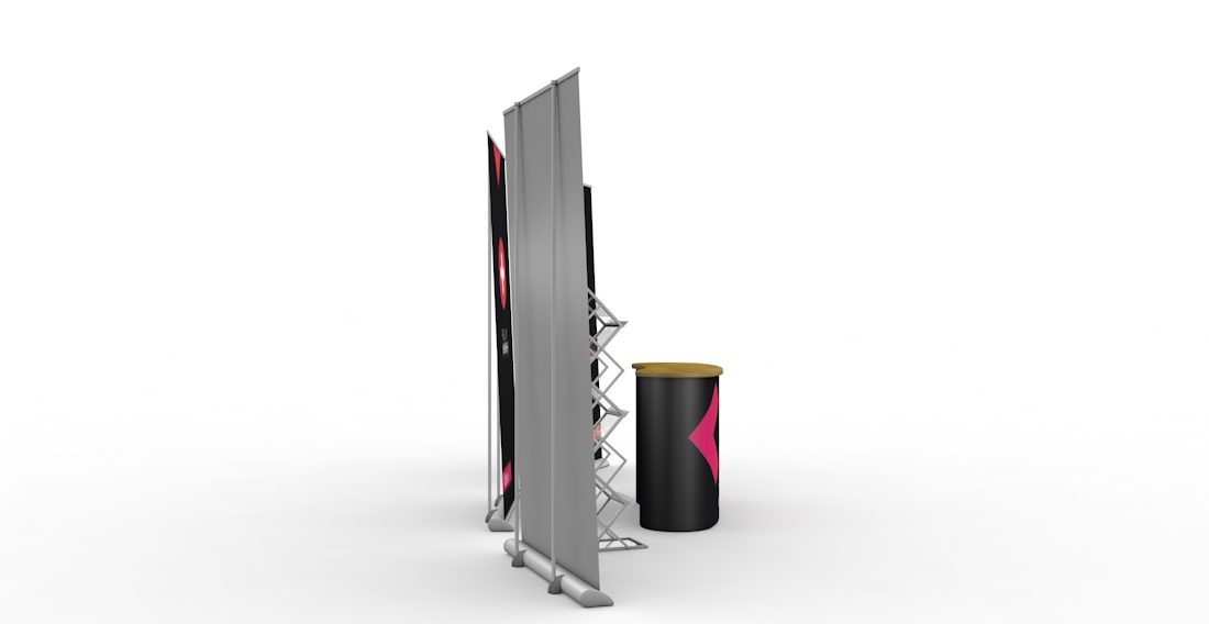 Sie suchen nach einer schlichten Präsentationsmöglichkeit, um einen Point of Sale zu gestalten? Mit unserem flexiblen PoS Set 06 erhalten Sie einen kleinen aussagekräftigen Werbestand.